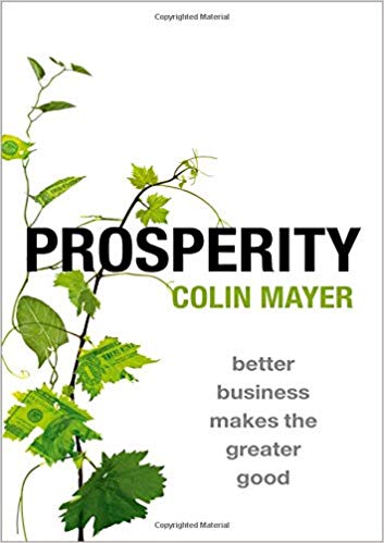 “Money and morals are not natural bedfellows,” writes Colin Mayer in his latest release, Prosperity. The celebrated British economist’s mission is to challenge the axiom that one can do well by doing good because unfortunately it’s well proven how much more can be achieved (read: raked in) by doing bad. While he makes the case in part by informing on the evolution of the corporation from the Roman Empire onward, noting well the disintegrating spirit of being “bound together in office for a common purpose,” Mayer is no Michael Lewis. Where the latter can spin Hollywood gold probing skull-imploding baseball statistics and financial instruments, this author merely instructs… and instructs. Worse yet, he believes “what cannot be said in words is not worth saying.” Yup, there are neither charts nor tables, further making it the four-point font slog it is to get through.
